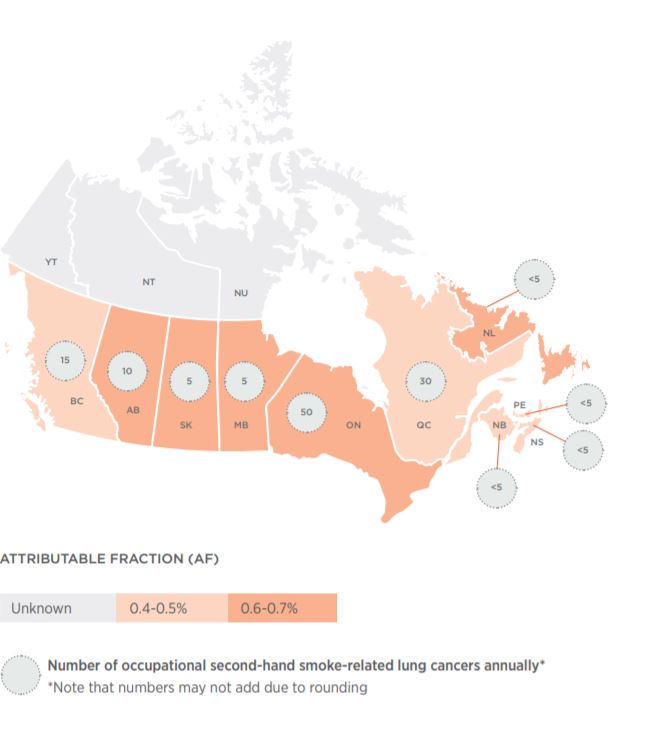 The results on occupational exposure to second hand smoke might surprise those who think that workers are currently protected in Canada. By the CAREX’s estimates, over half a million workers continue to be exposed.