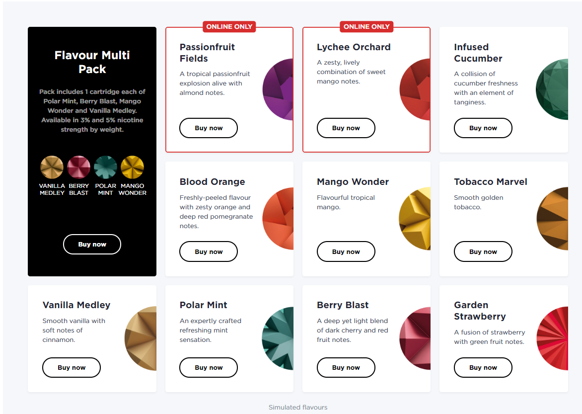Imperial Tobacco has responded to concerns about flavours not by reducing the number of flavour they offer, but by increasing them. Since the MOH call for restrictions, the company has introduced 4 additional flavours – Infused Cucumber and Blood Orange (January) and Passionfruit Fields and Lychee Orchard (March).